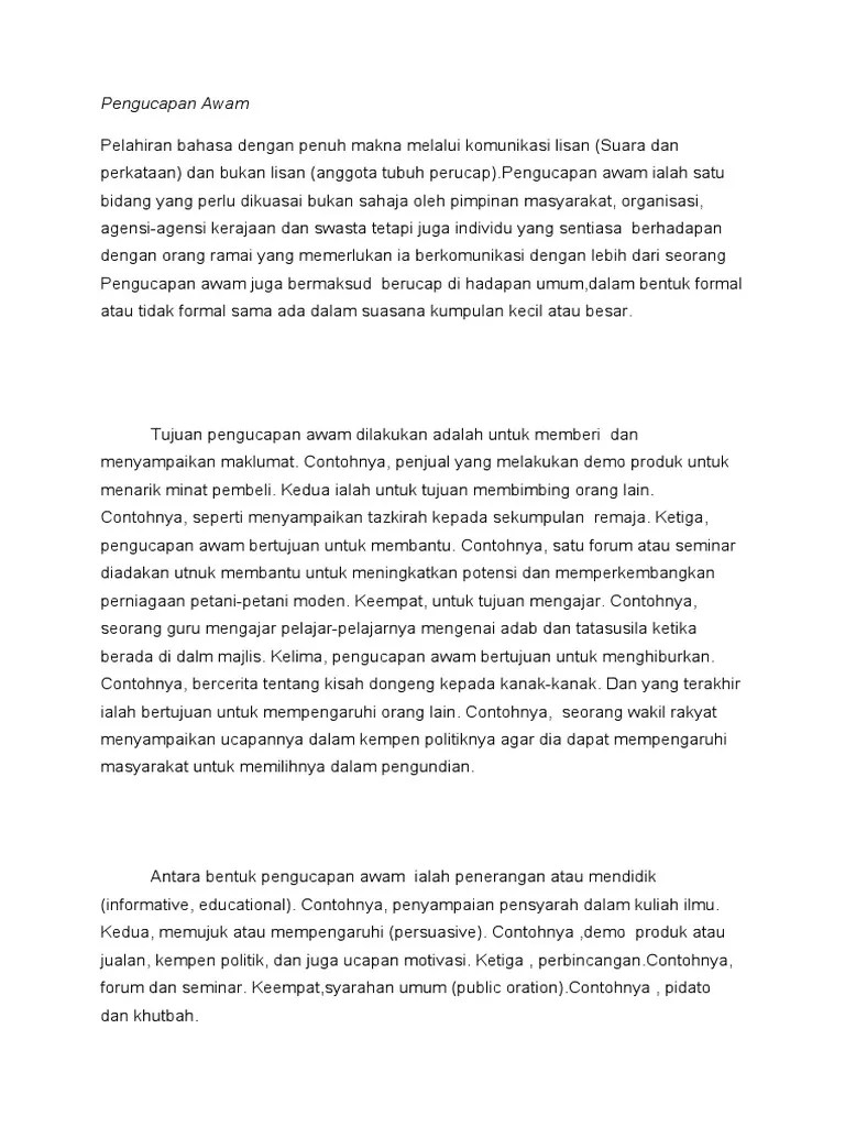 Dan tidak kisah juga tajuk pengucapan awam kita tentang pencapaian syarikat status projek tentang kesihatan tentang remaja atau tentang . Oleh itu, kesedaran rakyat malaysia tentang . Doc teks pengucapan awam nur mazni academia. Jika rakyat negara ini mengamalkan aktiviti senaman, tidak mustahil tahap kesihatan rakyat malaysia akan meningkat. Contoh teks pengucapan awam tentang harapan . Contoh tajuk pengucapan awam menarik yang ringkas spontan.